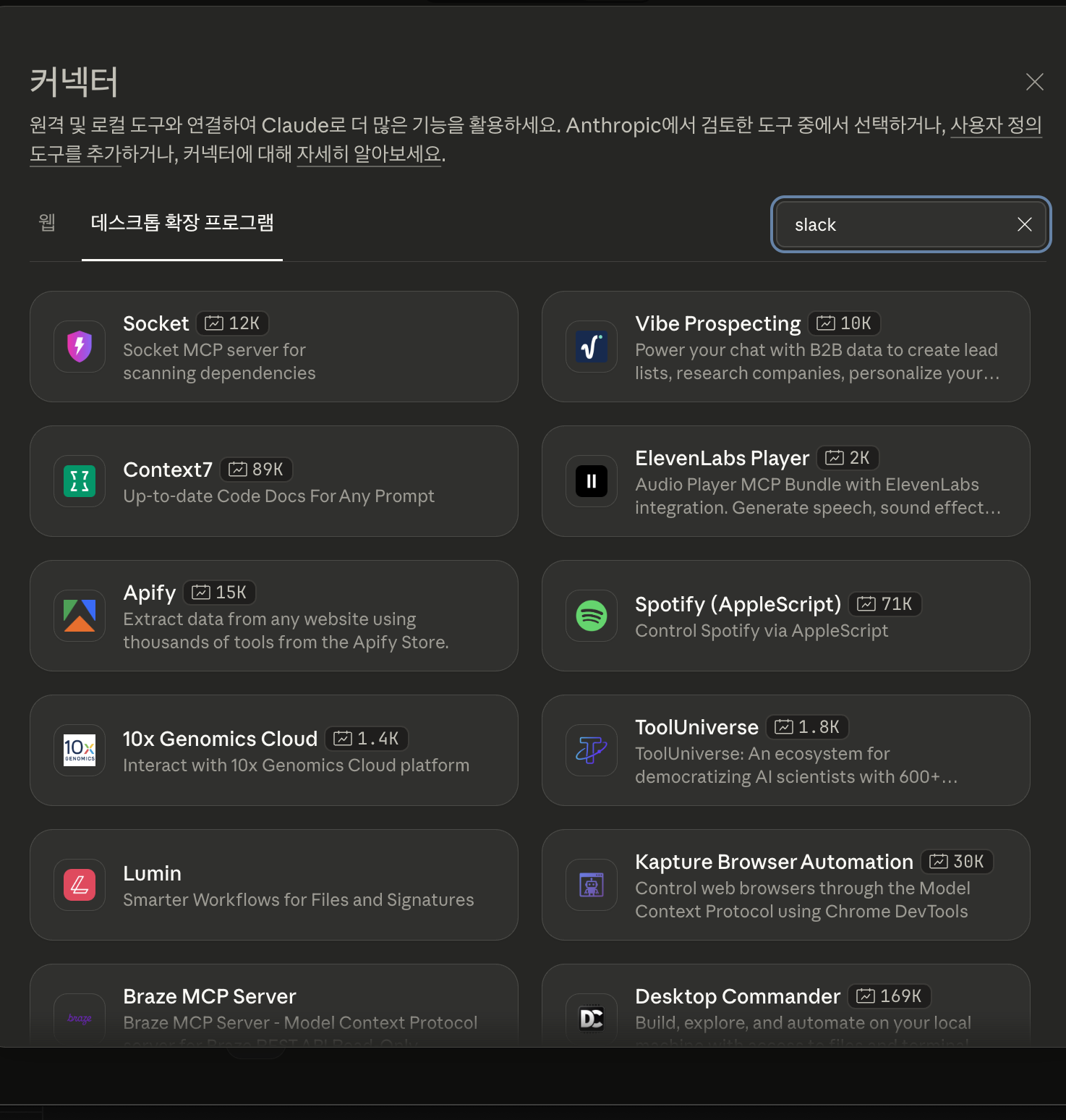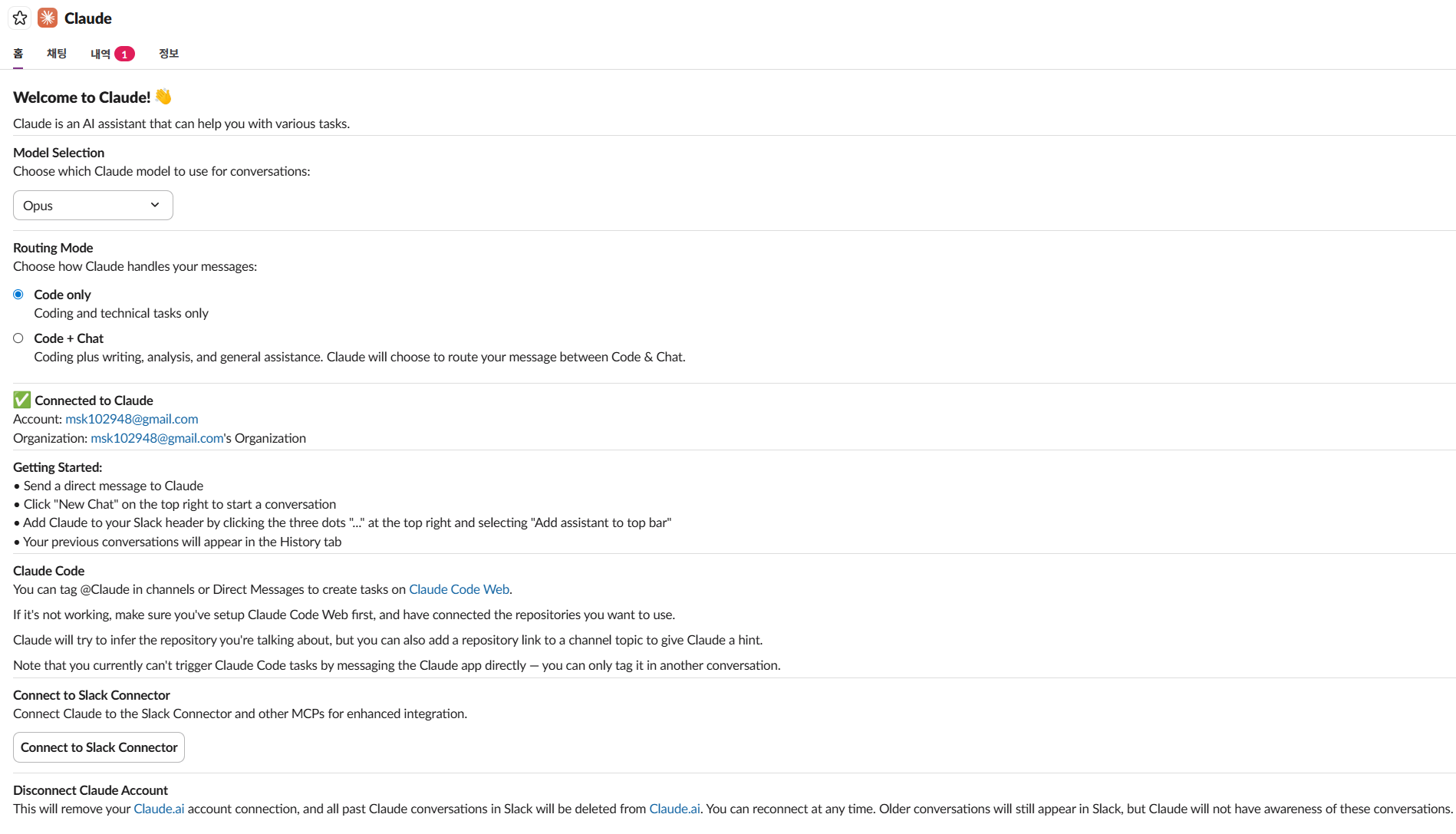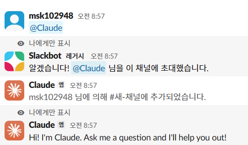 일단 커넥터를 내버려두고 slack에서 claude를 불러보자.